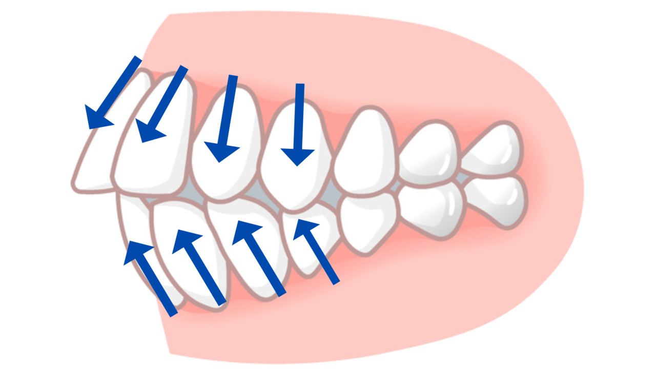 お口の状況によっては、適切なスペースを確保するために抜歯する必要があるケースもあります。例えば、突出した前歯を引っ込めるのが難しい症例などです。
