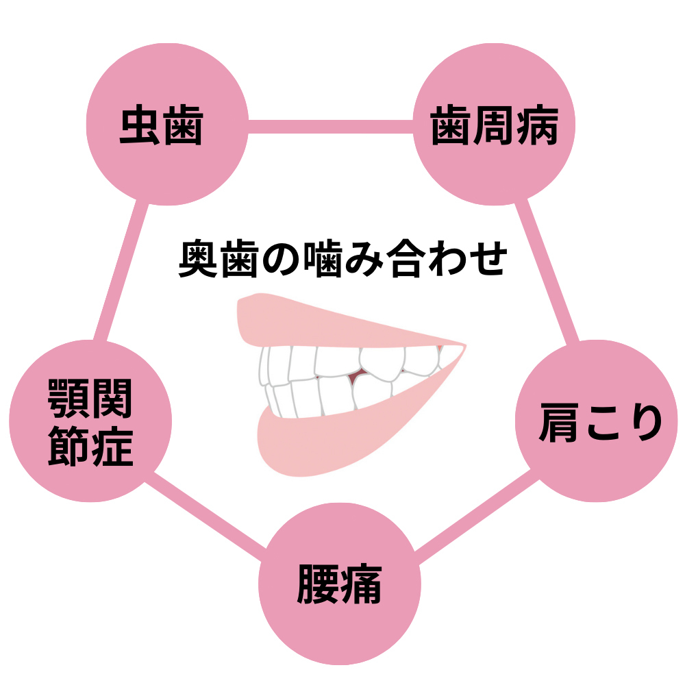 さらには、虫歯・歯周病・顎関節症の予防、肩こりや腰痛の改善といったお体の健康にも良い影響があるのです。