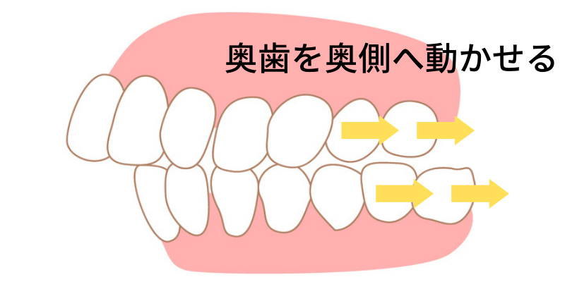 奥歯を動かすことで、前歯を並べるためのスペースを確保できるため、中度〜重度の歯並びの方でもマウスピース矯正が可能になるのです。